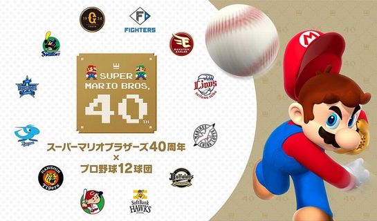 任天堂、マリオとプロ野球12球団のコラボ試合実施決定! マリオによる始球式、ハテナブロックが塁ベースにwwwww