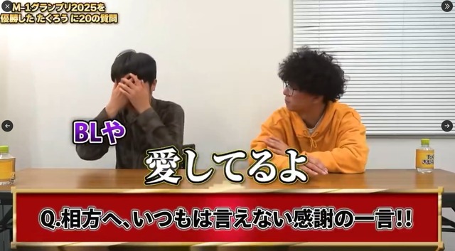 M-1王者『たくろう』が自分たちがBLのネタにされてることに言及wwww