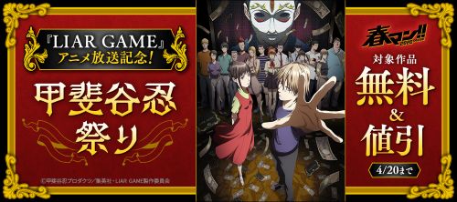 【本日終了】『LIAR GAME』 『霊能力者 小田霧響子の嘘』 『翠山ポリスギャング』などの人気作品が最安「110円」で買える、アニメ放送記念激安セールは今日まで!!